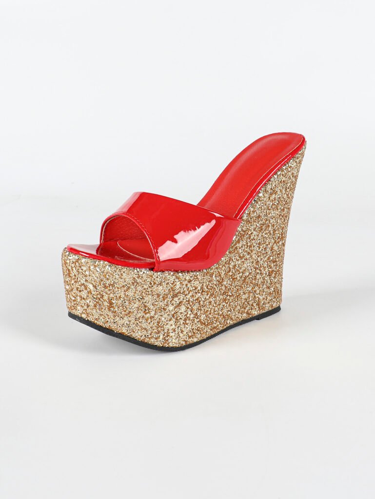 This women’s platform wedge sandal features a bold, high-elevation silhouette combined with a stable wedge base, developed for B2B buyers seeking strong visual impact with commercial production feasibility. The open-toe slide design allows for easy wear while maintaining a clean and modern appearance.
