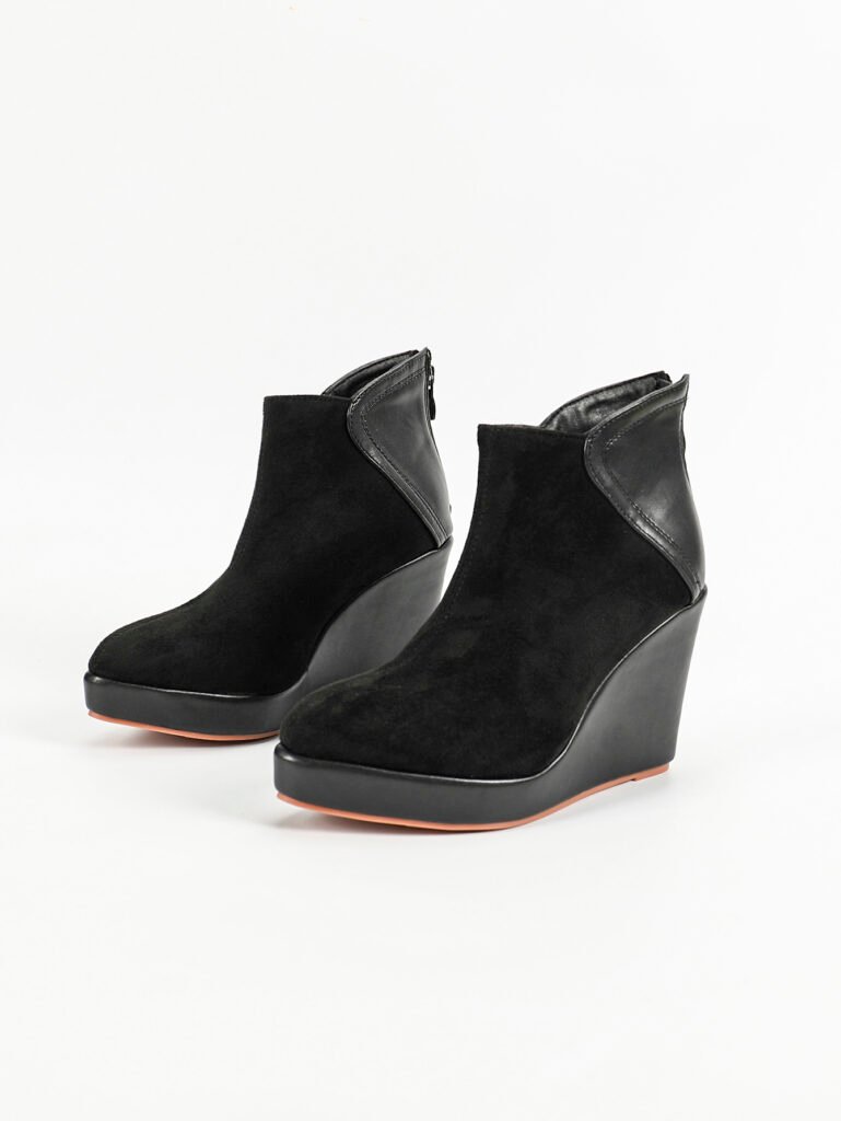 Minimalist women’s wedge ankle boots with back zipper design. Comfortable, stable, and suitable for OEM & private label bulk production.